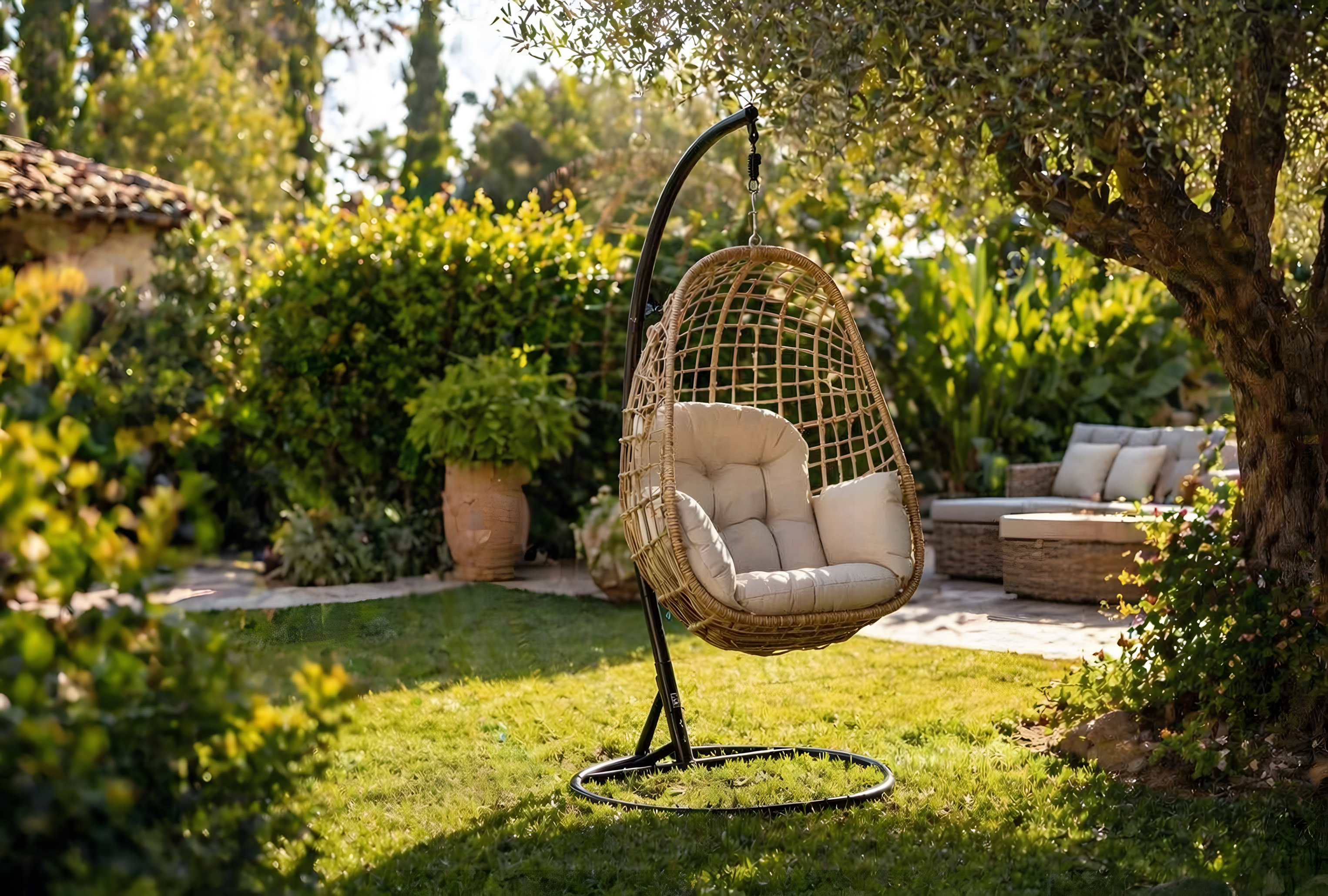 人工ラタン製クッション付き屋外吊り下げ椅子